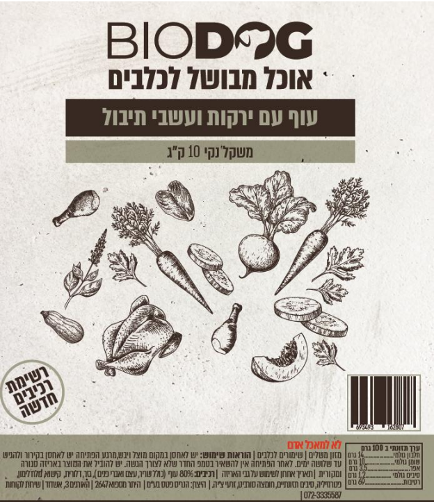 עמוד הבית / תזונה טבעית 🍃 / מזון טבעי לכלבים וחתולים / מותגי תזונה טבעית / ביו דוג BIO DOG / ביו דוג מזון טבעי עוף עם ירקות ועשבי תיבול – 10 ק״ג לא מצריך הקפאה