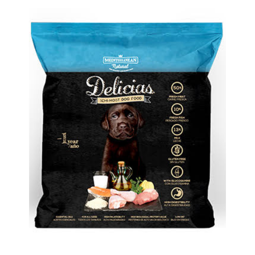 delicias דלישס חטיפי אילוף קטנים בצורת משולשים שטוחים.