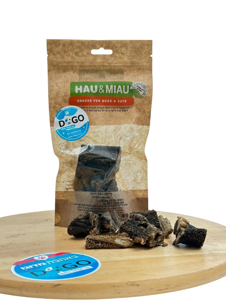 עמוד הבית / תזונה טבעית 🍃 / מזון טבעי לכלבים וחתולים / מותגי תזונה טבעית / האו ומיאו - Hau&Miau / האו ומיאו חטיף טבעי – נגיסי קירשה טלה ירוקה 70 גרם