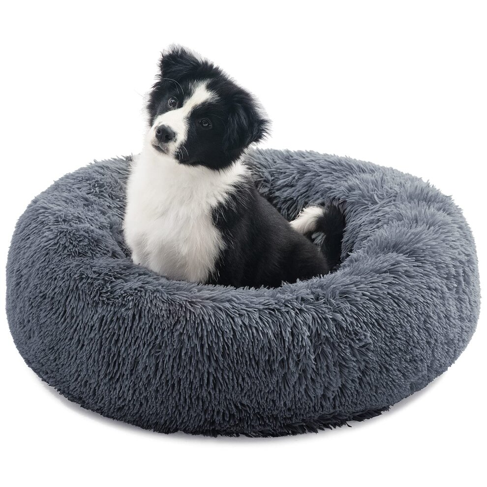 מיטה עגולה מפנקת פוף פרוותית – פלאפי Fluffy אפורה כהה 80 סמ