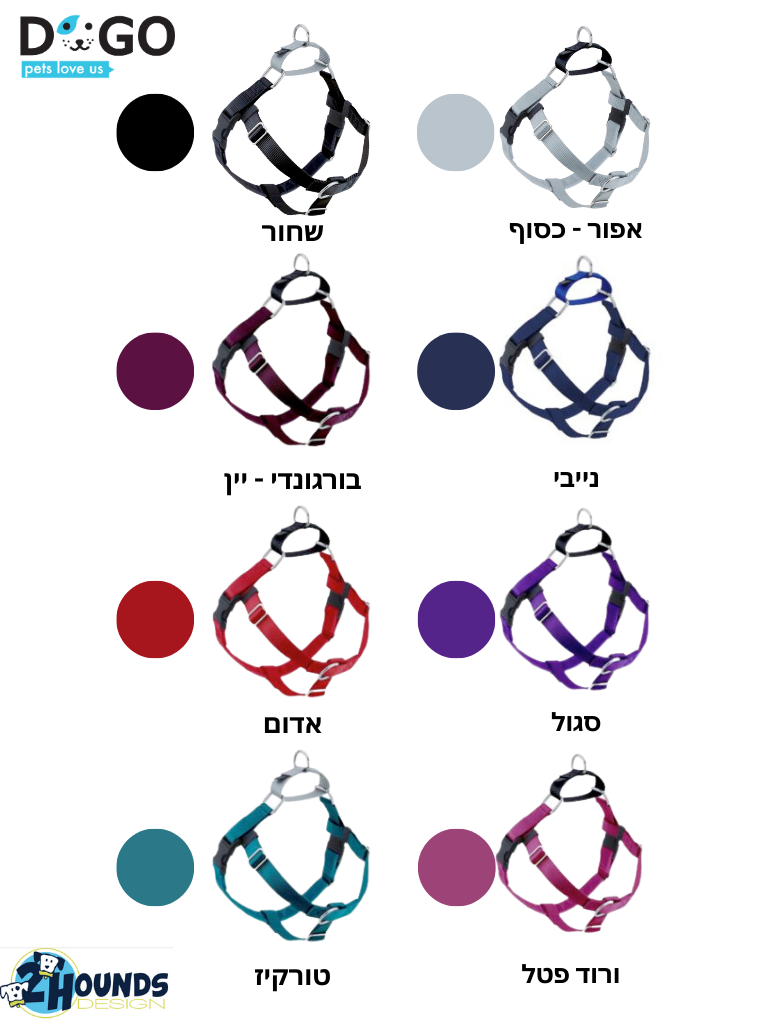 - לולאת שליטה פטנטית – עיצוב חדשני שמתהדק בעדינות סביב החזה של הכלב כאשר הוא מושך, ומונע את ההתנהגות מבלי לגרום לאי-נוחות.