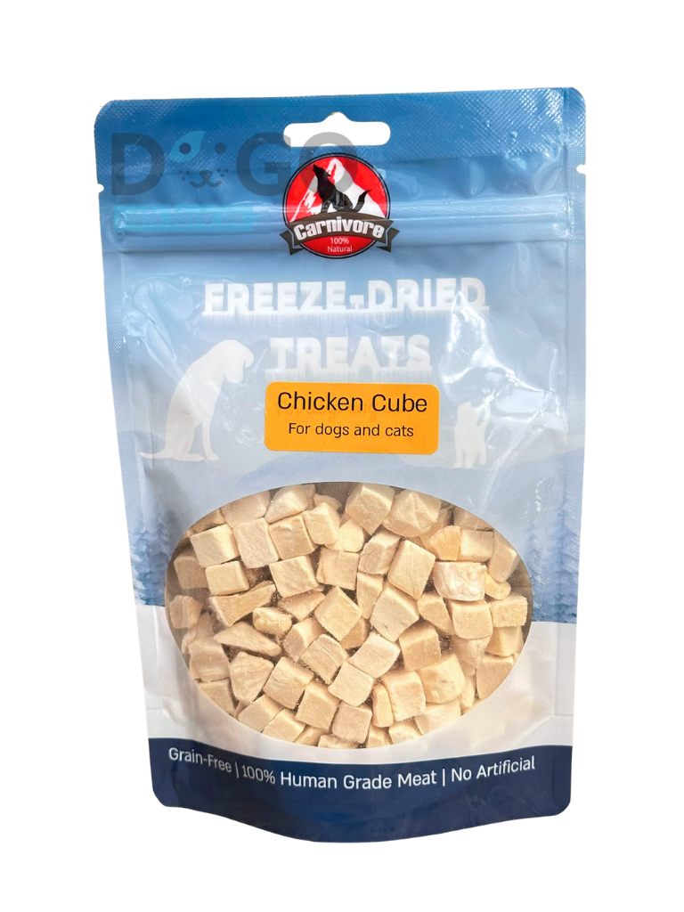 קרניבור חטיף אילוף טבעי – קוביות חזה עוף מיובשות בהקפאה -40 גרם