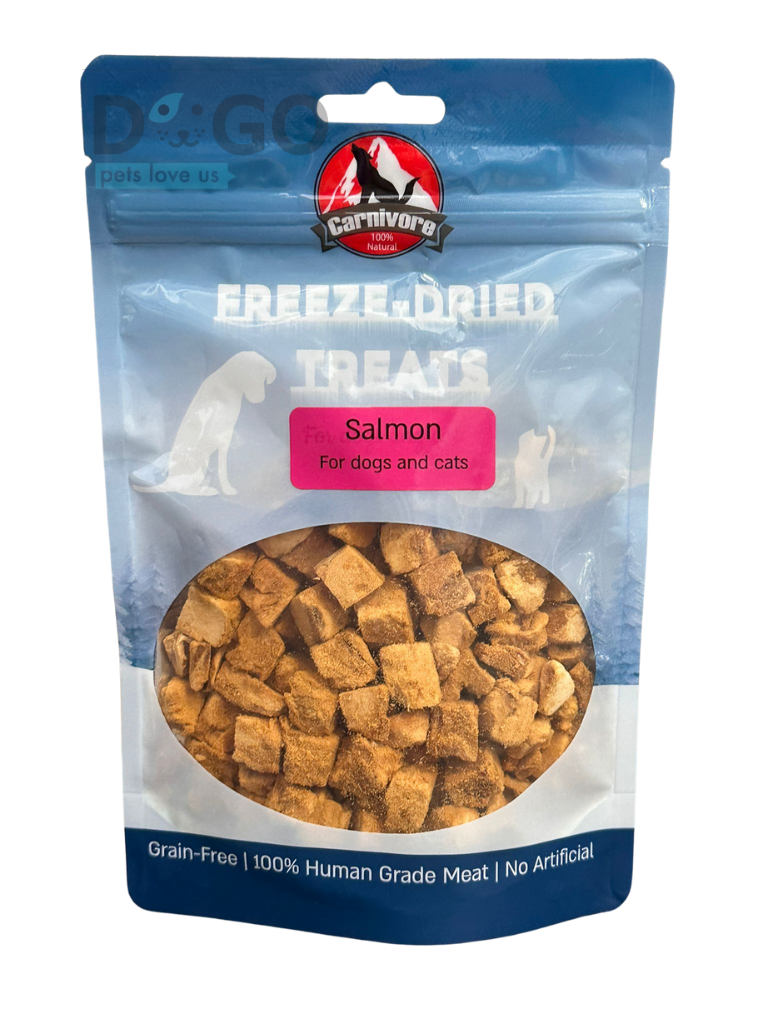 קרניבור חטיף אילוף טבעי - קוביות סלמון מיובשות בהקפאה -40 גרם