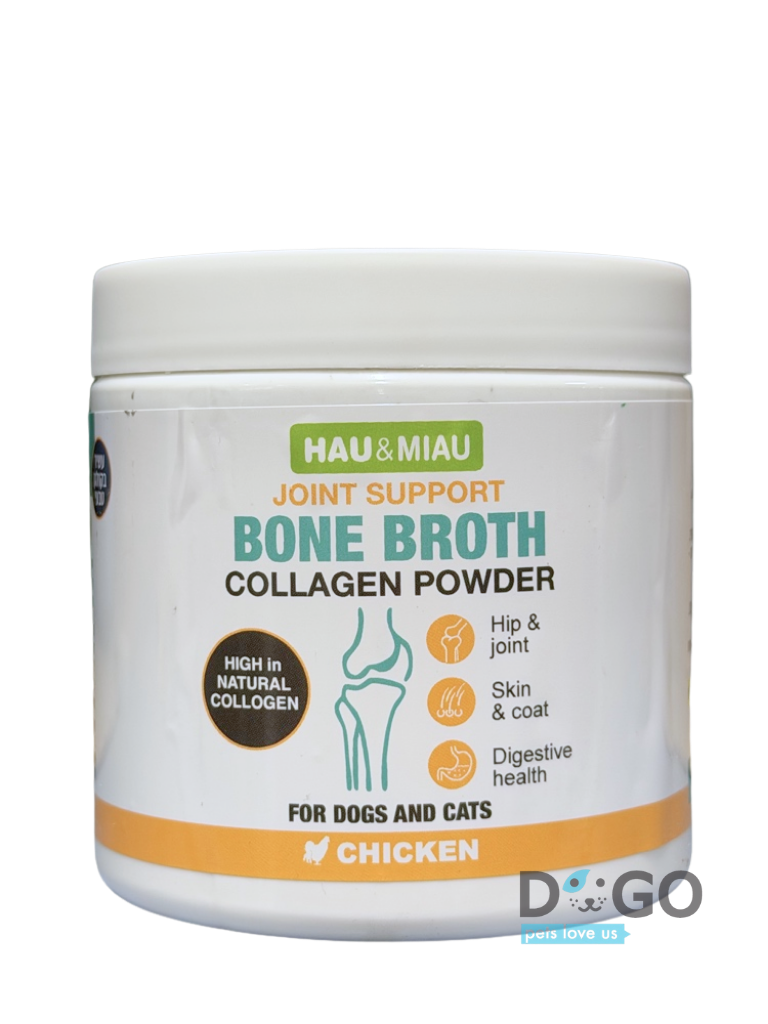 האבקה עשירה בקולגן, חלבון חיוני המהווה את אבני הבניין של הסחוס והעור, ובכך תורמת למראה פרווה בריא ולגמישות המפרקים. בזכות הניחוח והטעם המודגשים של העוף, היא מהווה פתרון מצוין לבעלי חיים בררנים.