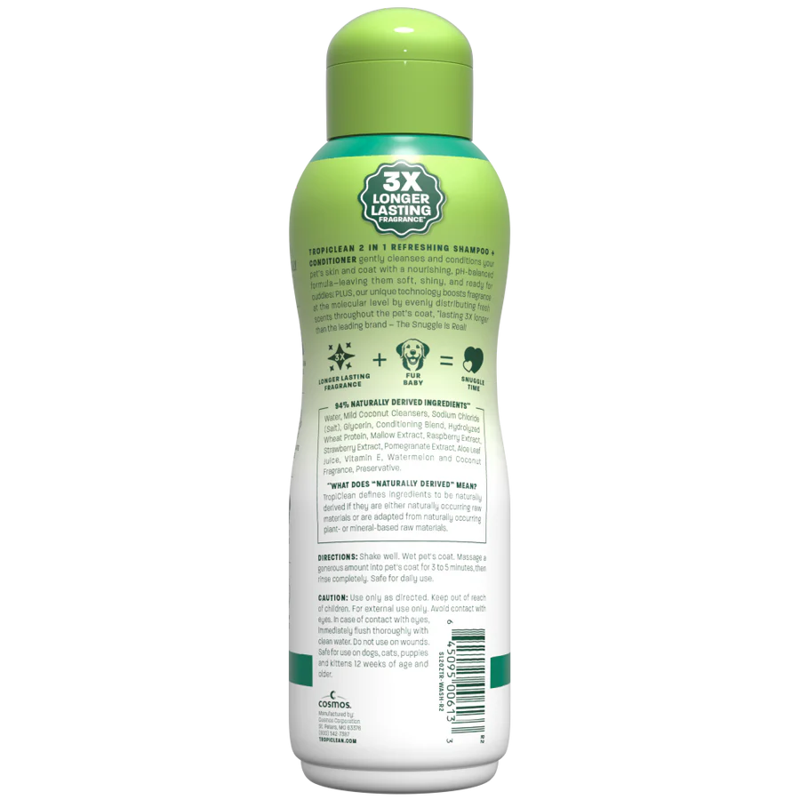 🍉 TROPICLEAN (טרופיקלין) שמפו ומרכך 2 ב-1 מרענן בניחוח אבטיח 592 מ"ל